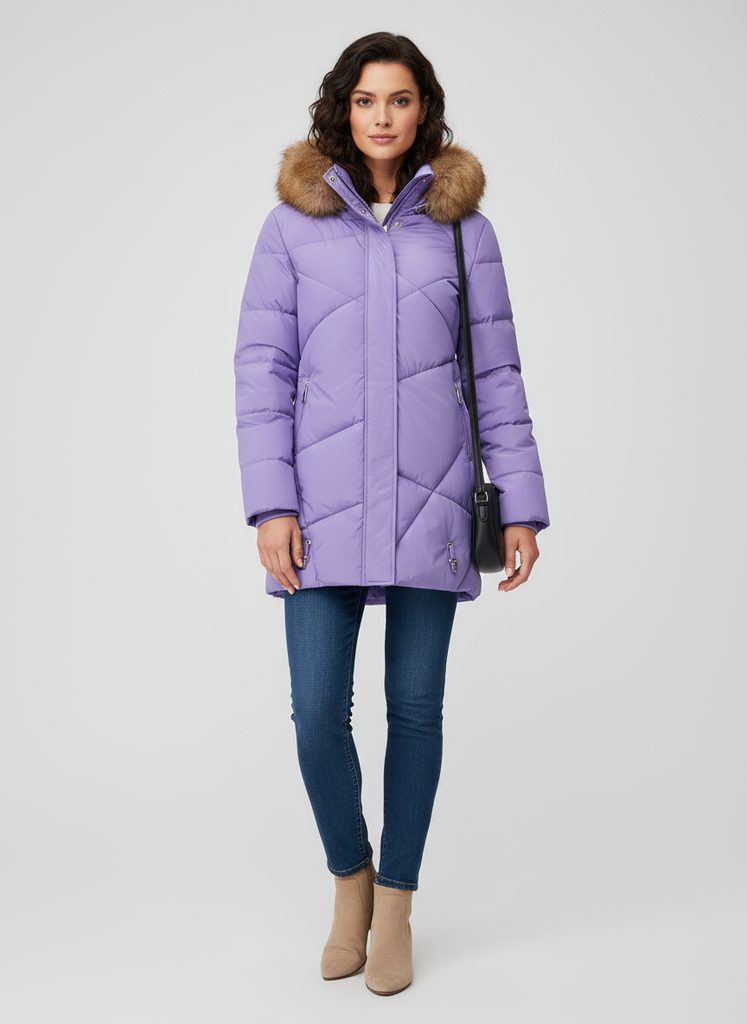 - neodopínateľná kapucňa s kožušinou a sťahovaním gumičkou