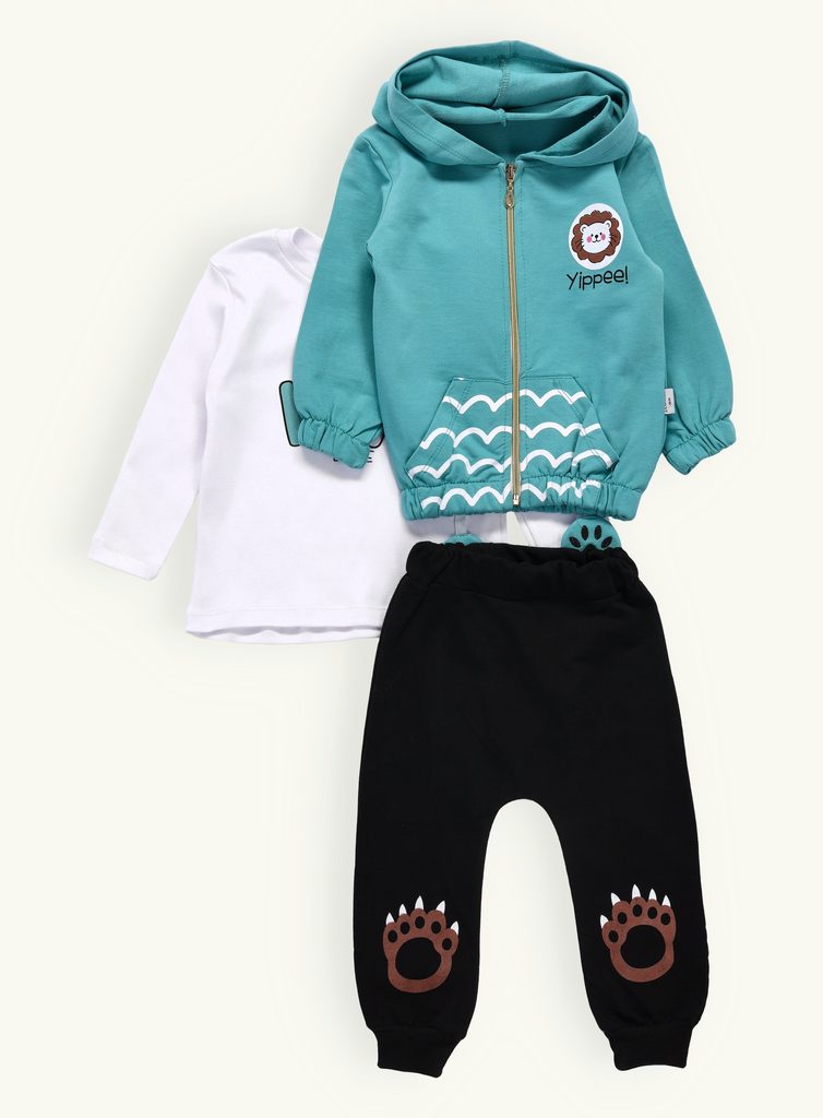 - mikina: má kapucňu, rukáv ukončený jemným lemom s gumičkou, farebná potlač vpredu i vzadu