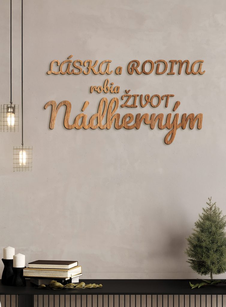Drevený nápis na stenu s textom "Láska a rodina robia život nádherným" je dokonalým doplnkom pre každý domov. Tento nápis je vyrobený z kvalitného HDF dreva, čo zaručuje jeho pevnosť a trvanlivosť.