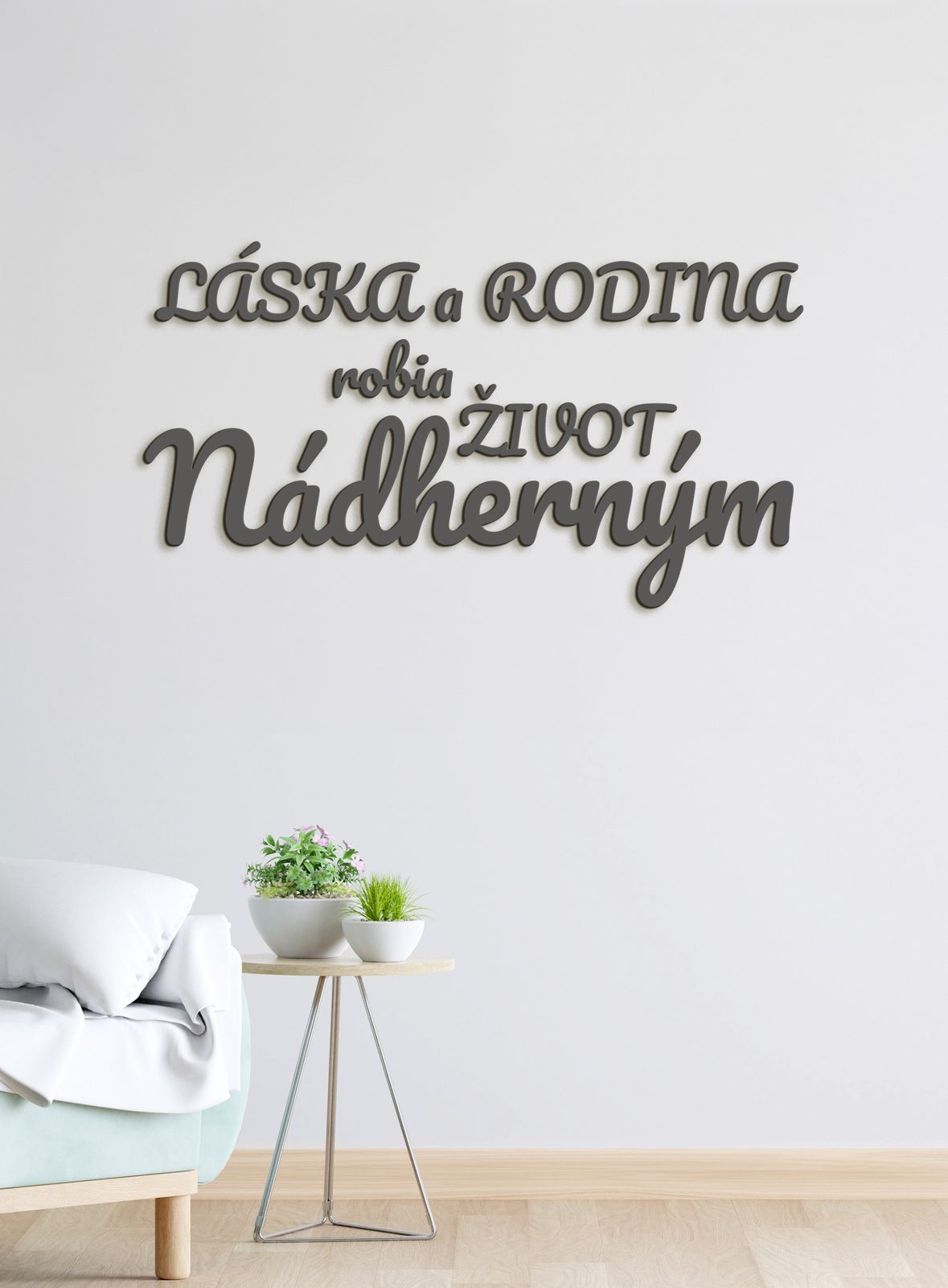 Naše Citáty a nápisy sú dostupné v rôznych vzoroch a veľkostiach, čo umožňuje vybrať si ten správny pre váš interiér. Vďaka detailnej vyrezávacej technike, každý produkt je originálnym umeleckým dielom.