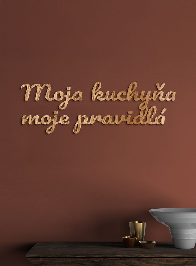 Drevený motivačný nápis na stenu "Moja kuchyňa, moje pravidlá" je ideálnym doplnkom pre každého, kto miluje varenie a chce vyjadriť svoju vášeň pre kuchyňu. Nápis je vyrobený z kvalitného HDF dreva, čo zaručuje moderný 3D vzhľad, pevnosť a dlhú životnosť.