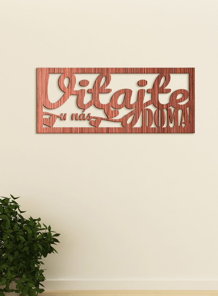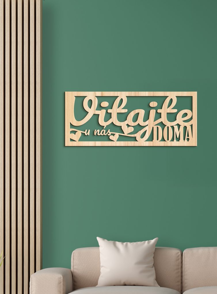 Krásny drevený nápis "Vitajte u nás doma" pridá teplý a priateľský dotyk do vášho domova. Vyrobený z kvalitného HDF dreva, tento nápis je ideálny na zavesenie pri vchode alebo v predsieni, aby privítal vašich hostí.
