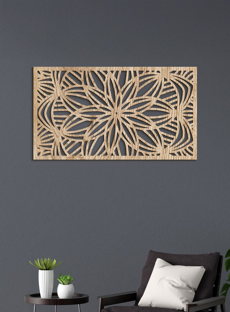 Táto očarujúca drevená mandala z HDF dreva prináša do vášho domova kúsok romantickej atmosféry. Mandala zobrazuje prekrásny kvetinový vzor, ktorý sa jemne rozplýva od stredového bodu, ako keď sa rozvinie láska na prvý pohľad.