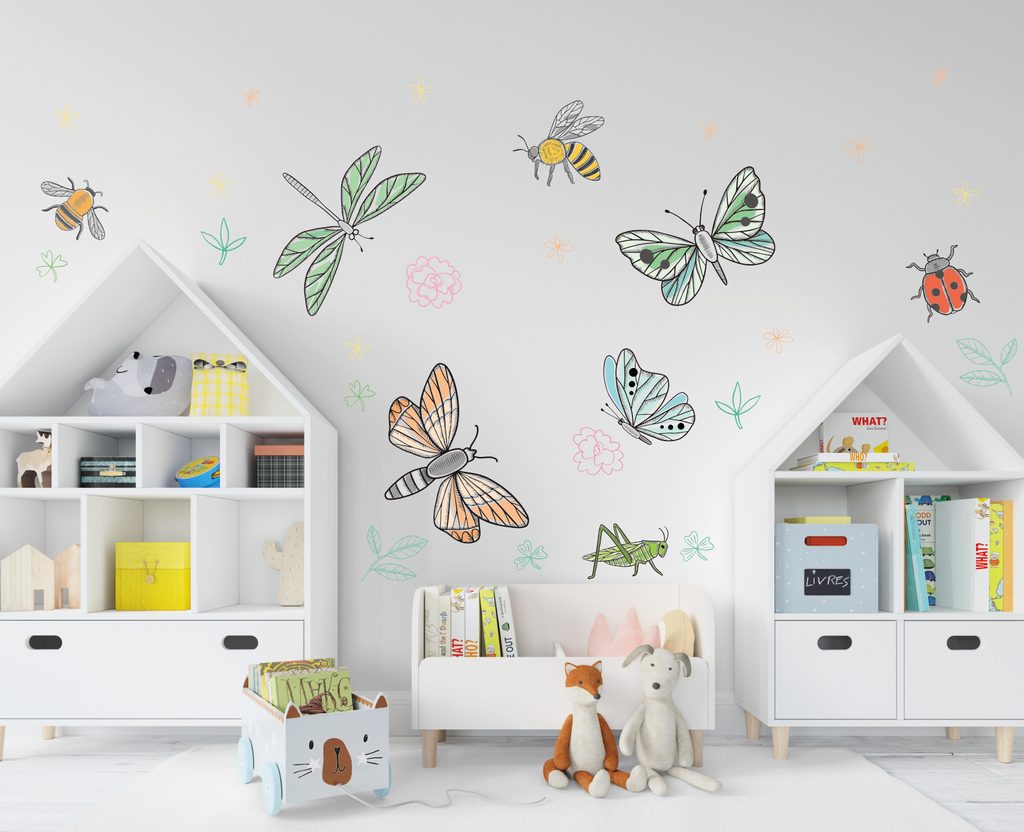Premeňte detskú izbu na kvitnúcu lúku plnú života! Naše nálepky na stenu s motívom hmyzu a kvetov sú ideálnym doplnkom do každej detskej izby, ktorá túži po jarnej atmosfére. Jemné pastelové farby a detailné ilustrácie vytvoria jedinečnú atmosféru a podnietia detskú fantáziu.