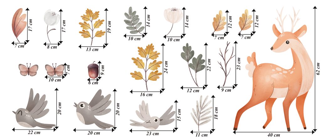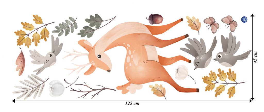 Premeňte detskú izbu na čarovnú lesnú čistinku! Naše nálepky s motívom jelena, vtáčikov a listov vytvoria útulnú atmosféru a priblížia deťom krásy prírody. Pastelové farby a detailné ilustrácie potešia každého malého objaviteľa.