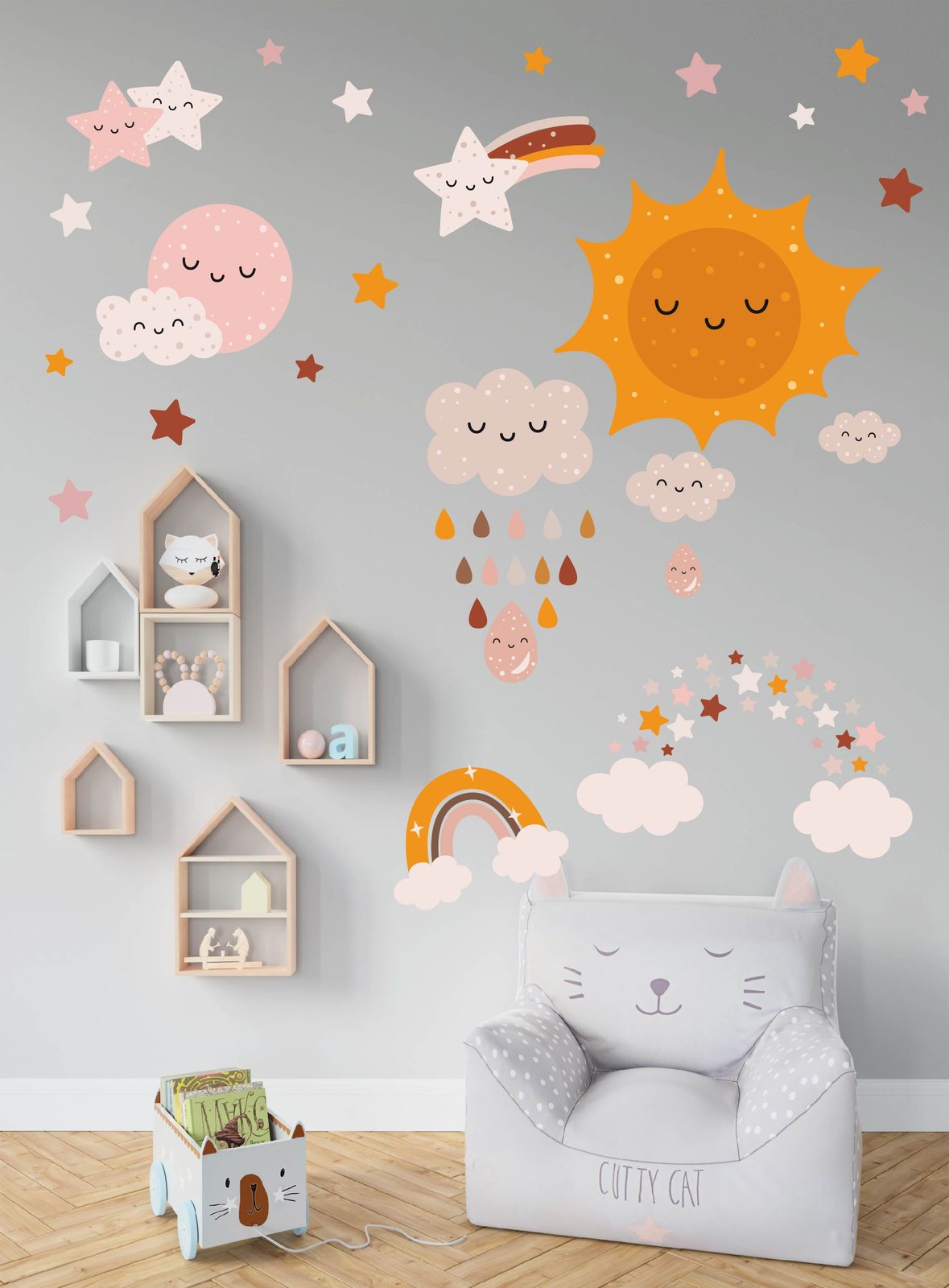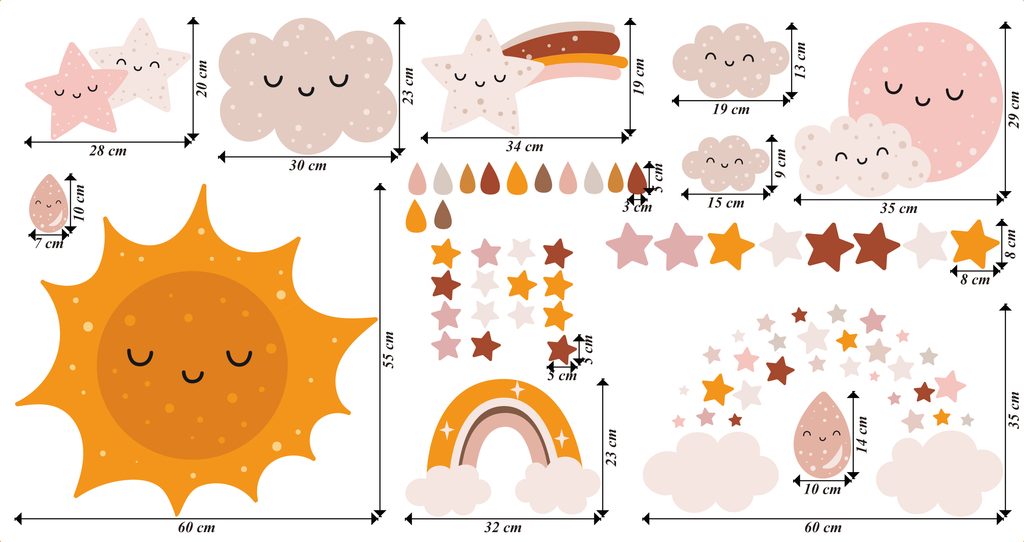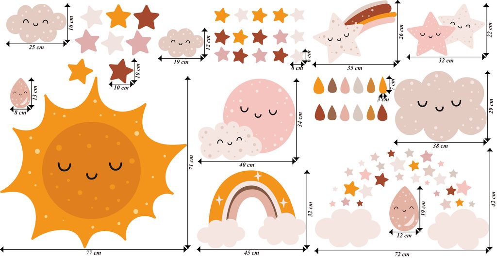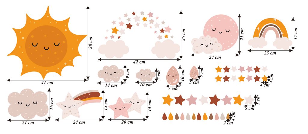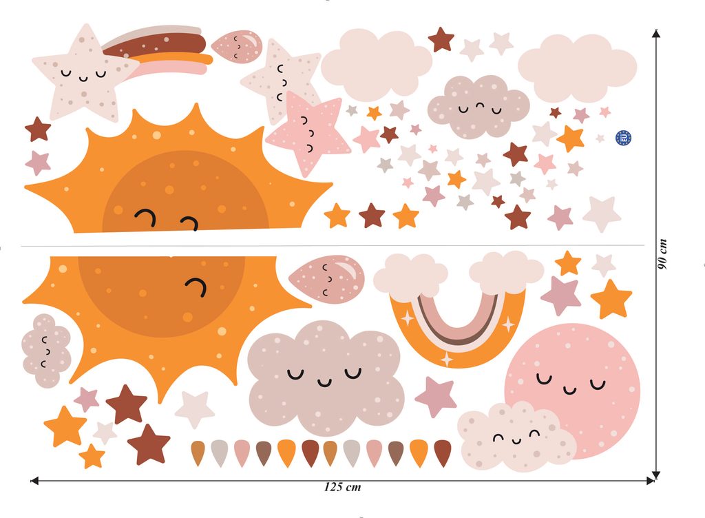 Vydajte sa s nami na dobrodružnú výpravu do vesmíru! Naše nálepky so slniečkom, mesiačikom, hviezdami a dúhou oživia každú detskú izbu. Nechajte svoju fantáziu zablúdiť medzi hviezdy a planéty.
