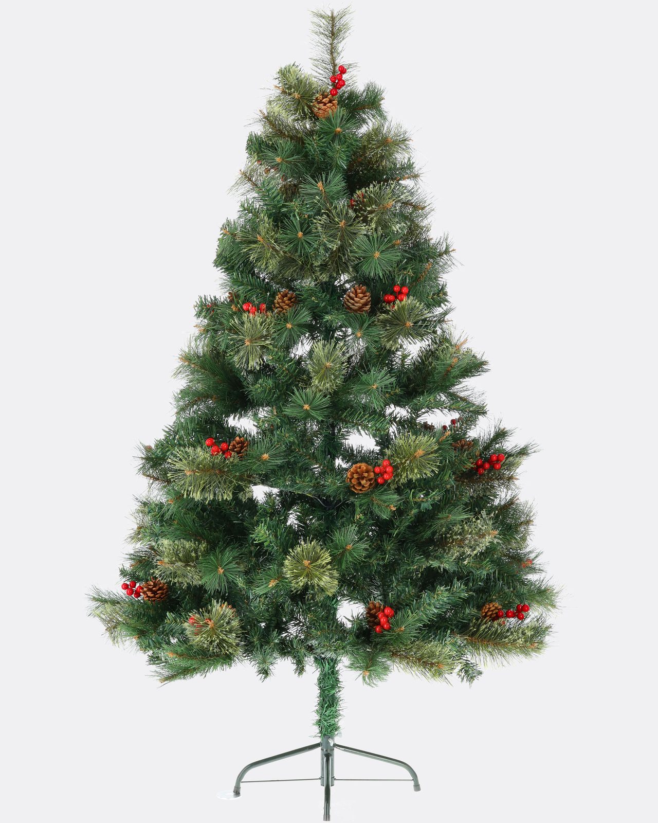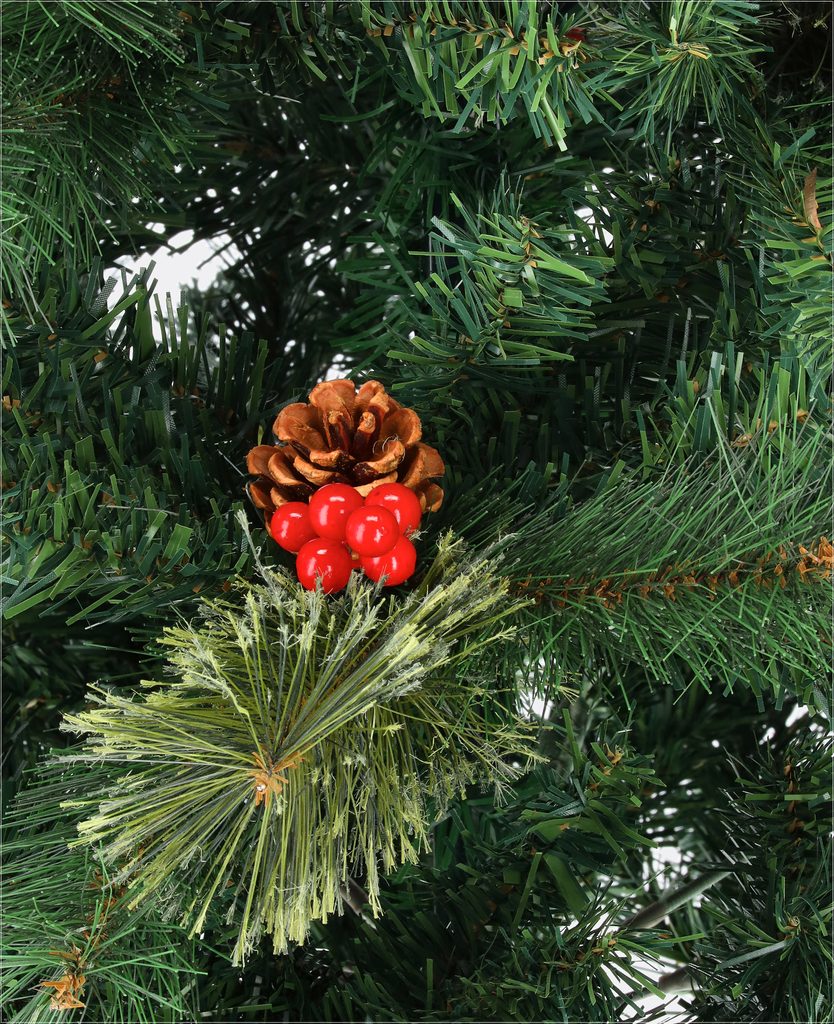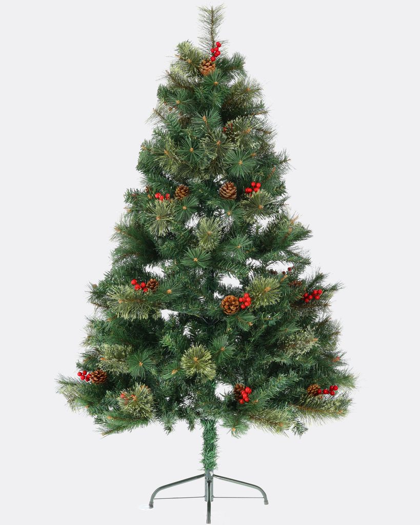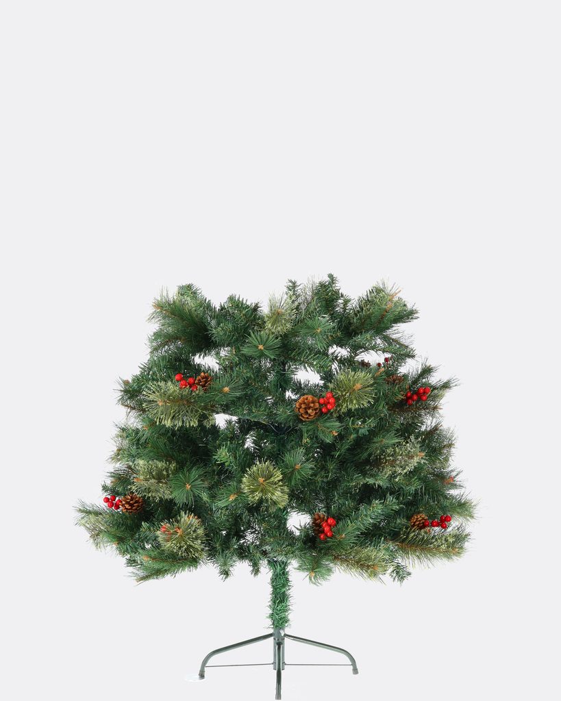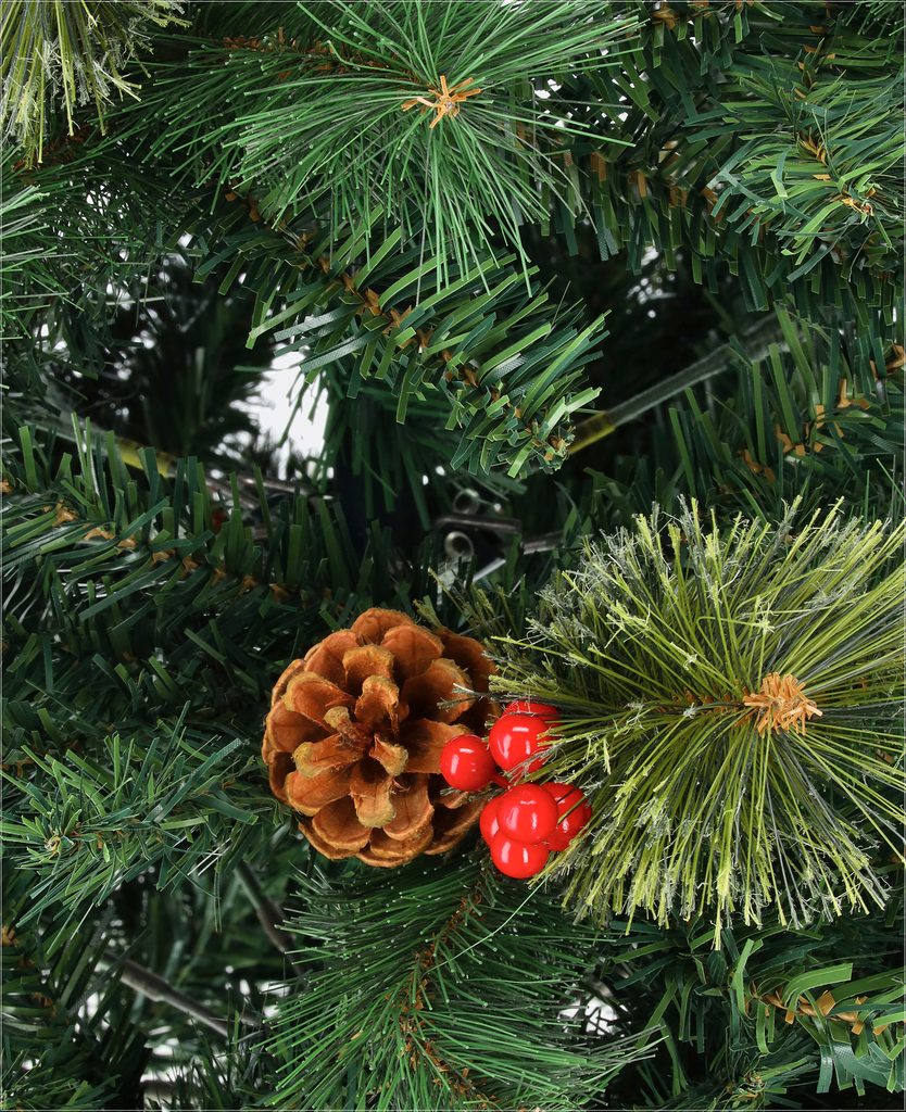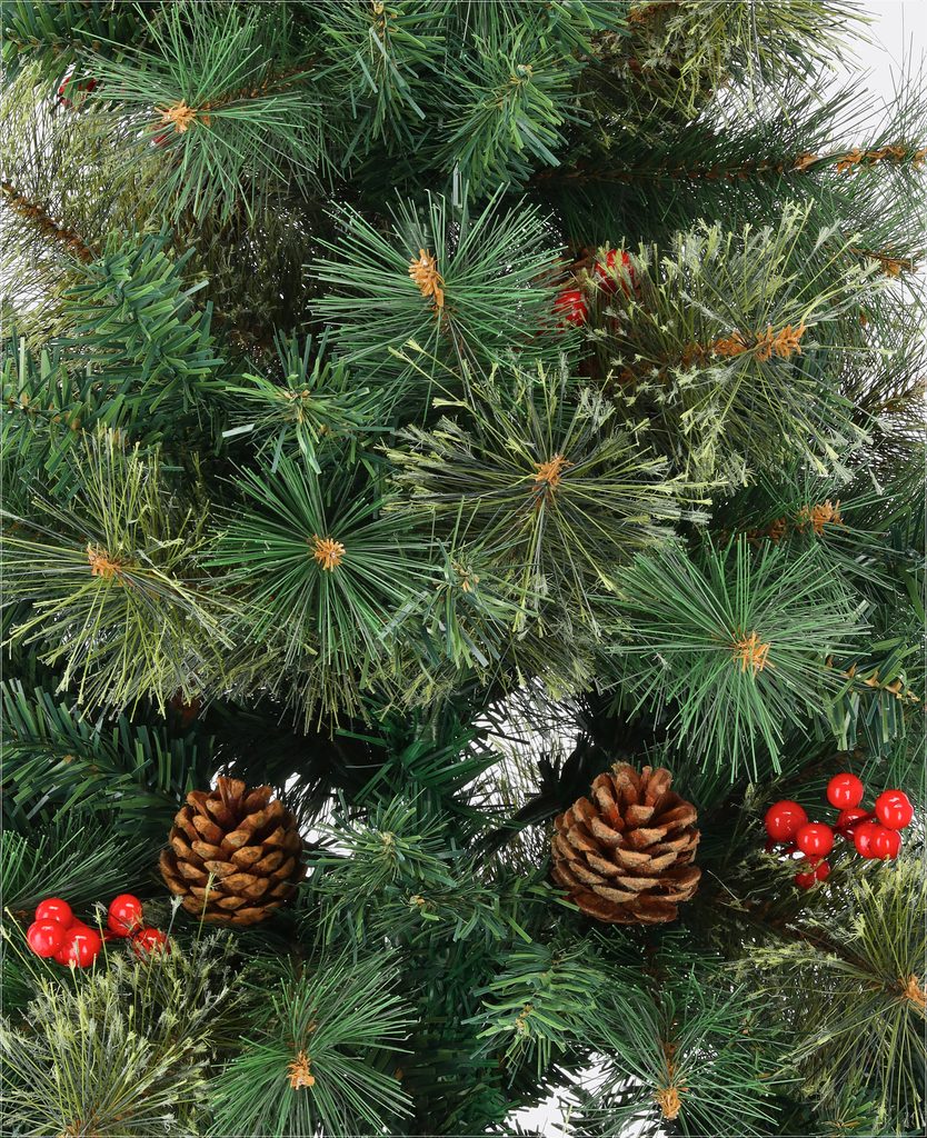 Husté ihličie s rôznymi odtieňmi zelenej pôsobí neuveriteľne realisticky, zatiaľ čo predinštalované prírodné šišky a žiarivé červené bobule dodávajú stromčeku tradičný a elegantný vzhľad. Nemusíte sa obávať zložitých dekorácií, Jedľa Švédska je už pripravená na to, aby žiarila vo vašej obývačke.